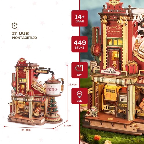 Houten mechanisch bouwpakket Dream Gift Factory gekleurd (Robotime)
